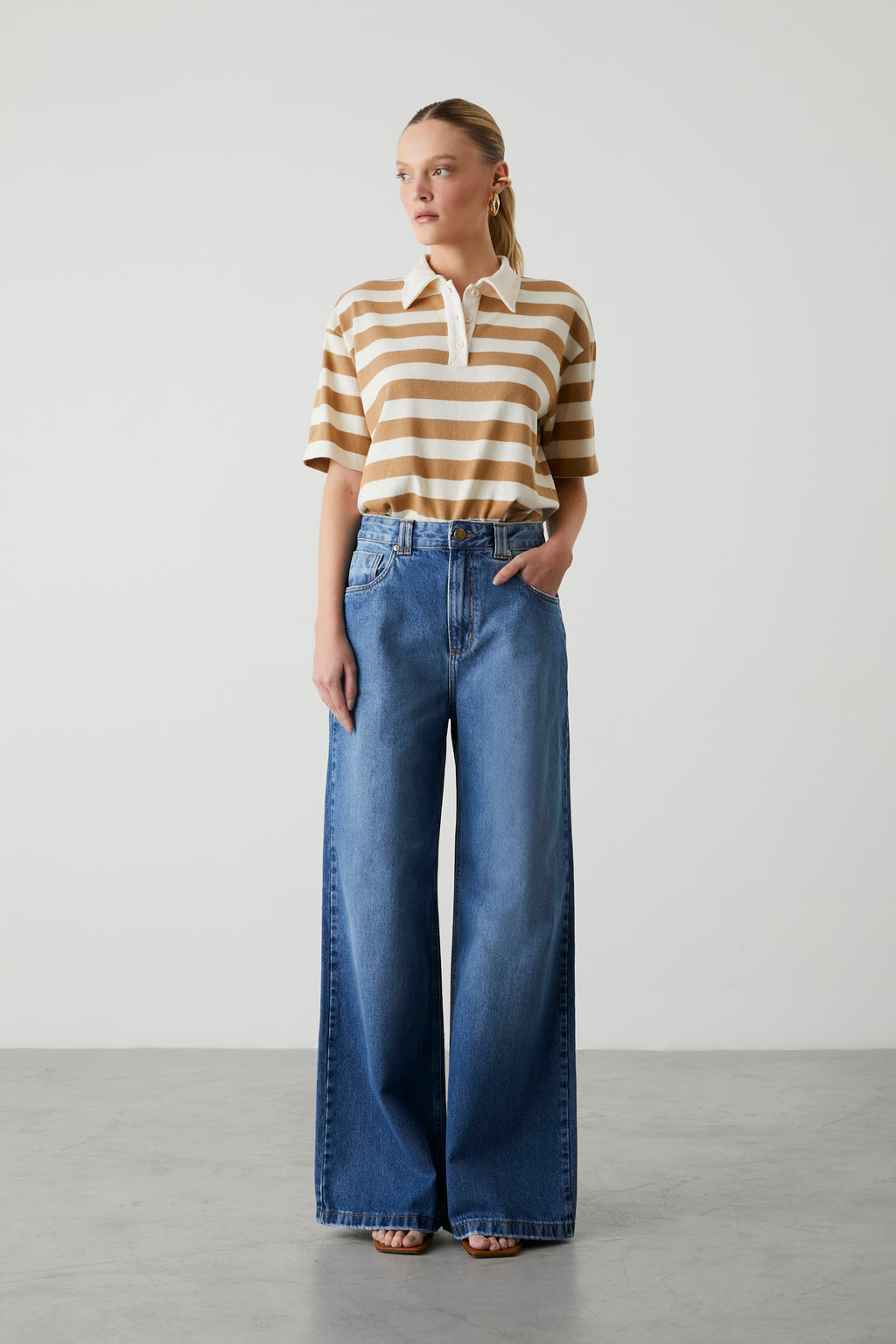 Introducing the Melanie T-shirt - combining elegance, sophistication, and comfort in one. Made from 100% cotton, this polo shirt features stylish stripes and a button closure at the collar. The smooth collar and short sleeves add a modern and versatile touch, making it perfect for any occasion.