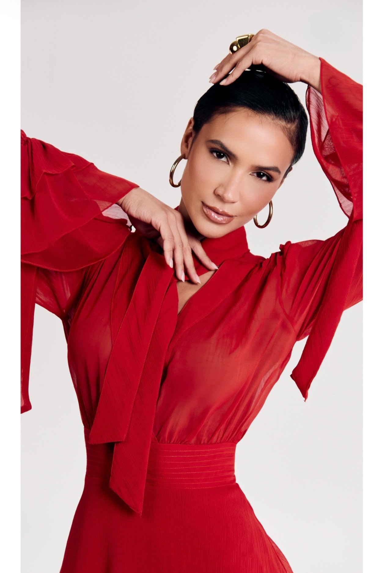 This romantic, feminine vest with fluttery sleeves and a full skirt is the perfect fit for any occasion. Its delicate design adds a touch of elegance to your wardrobe, while the flirty ruffles on the skirt add just the right amount of femininity. A must-have for any fashion-forward individual.